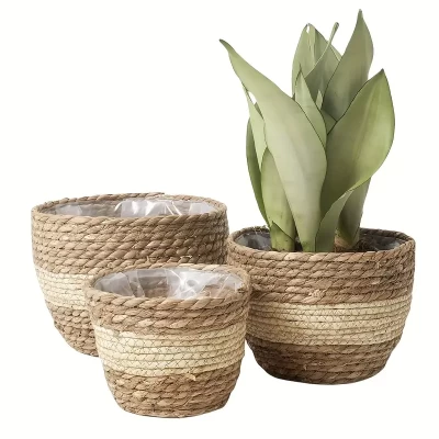 Gedamari Handmade Straw Rattan Plant Flower Pot Storage Basket Home Garden Decor